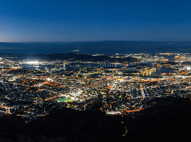 標高622mの山頂から北九州市内を一望できる。新日本三大井夜景のひとつ。