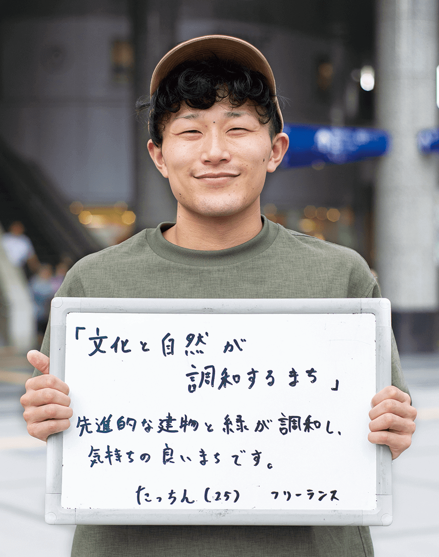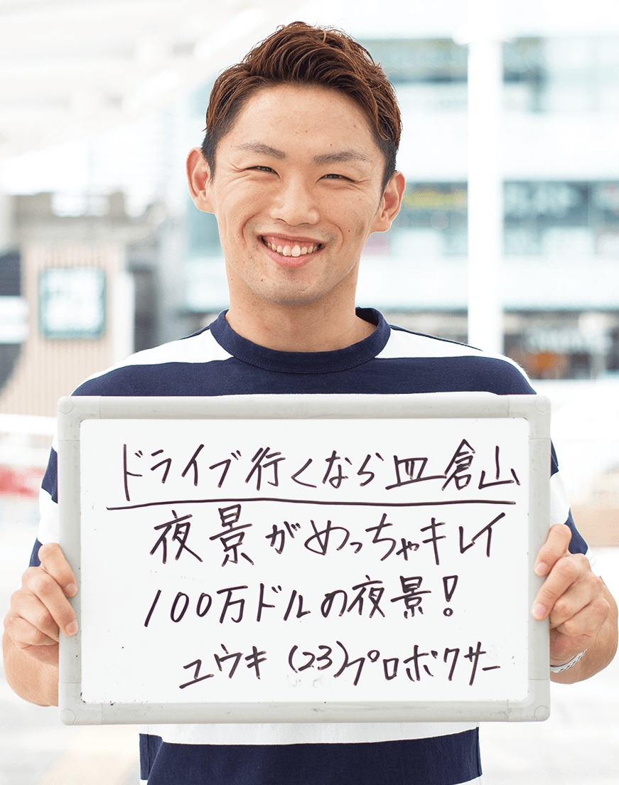 北九州は、九州の玄関口。いろんなところから人が集まるおかげか、オープンでおおらかな気風の人が多いんです。仕事の帰り道に一人で飲みに行っても、最後は知らない人たちと5、6人で飲んでることもしばしば(笑)。こっちには転勤で来たから九州自体が初めてで、最初は知り合いもいなかったけど、今は毎日誰かしらと朝までわいわい語り合ってます。会社では営業マンとして、日々の売上と格闘中。でも取引先との人脈づくりも、飲めば仲良くなれるから、自分の好きなことが仕事にもつながっているのは楽しいですね。将来の夢はプロのカメラマンになること。休日は門司港レトロや鍛冶町の商店街を背景に、撮影の練習に励んでいます。