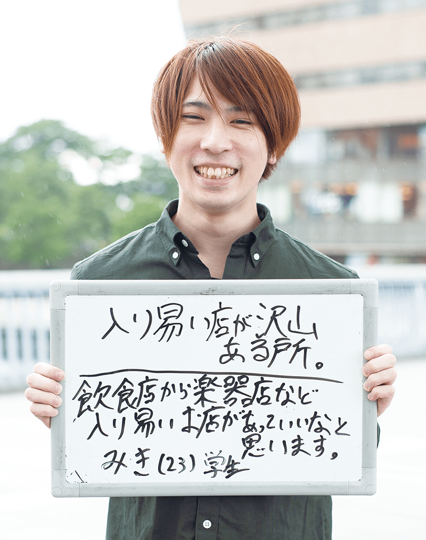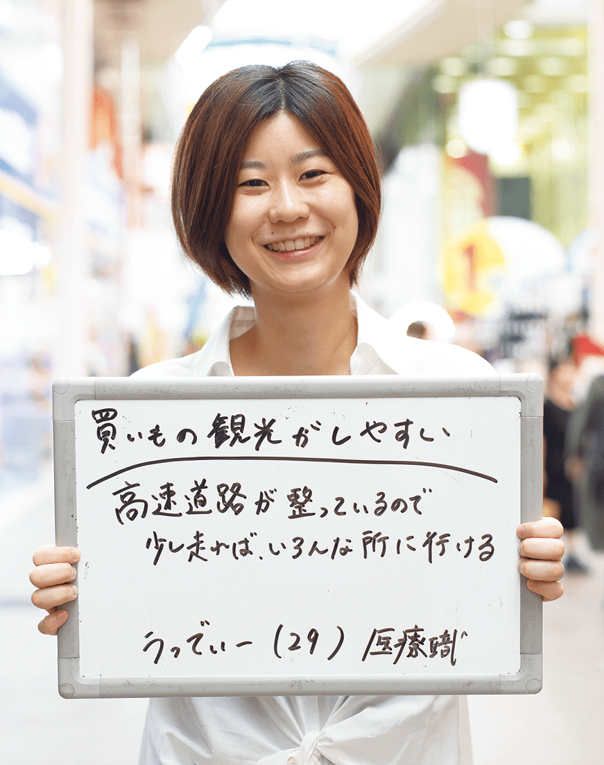 大学まで北海道にいたから、配属希望を出すとき「暖かいところに行きたい」って言ったんです。それで北九州に来ることが決まったけど、実際めちゃくちゃ住みやすい。このままずっと住んでもいいかなって思ってるくらいです。もちろん最初は知り合いがいなくて不安でした。でもある日、もともと大好きだった古着を探しに、小倉の古着屋さん「BAYSON」にふらっと行ってみたんです。そこで店員さんと仲良くなって、ほかのお店も紹介してもらって…どんどん知り合いが増えていきました。「友だちの友だちは友だち」って感じなんです。20代後半の人もたくさんいて、初めて北九州に来る人にもフレンドリー。自然もたくさんあるから、外に出るのが好きな人には最高の街です!